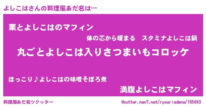 | 意味不明あだ名 | 『住所不定無職よしこは(59歳)』 |
