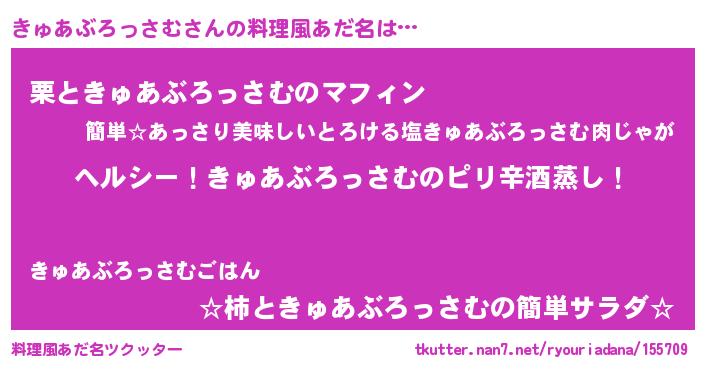 | 男性向けラノベタイトル風あだ名 | 『Re:きゅあぶろっさむから始める異世界生活』 |