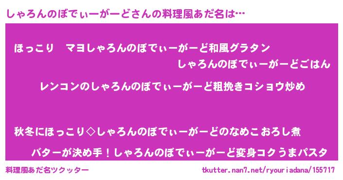 | 胡散臭い通販商品みたいなあだ名 | 『ガンによく効くアガリクス…その名も「しゃろんのぼでぃーがーど」』 |