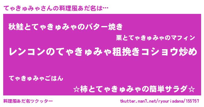| 女子向けラノベタイトル風あだ名 | 『てゃきゅみゃなんてお断りですっ。』 |