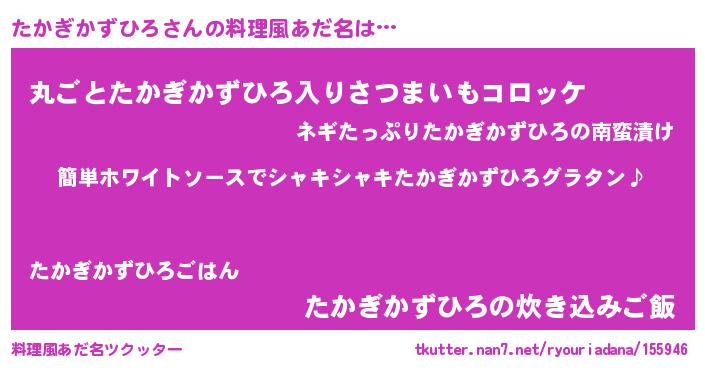 | 男性向けラノベタイトル風あだ名 | 『たかぎかずひろの嫁は女の子じゃないと思った?』 |