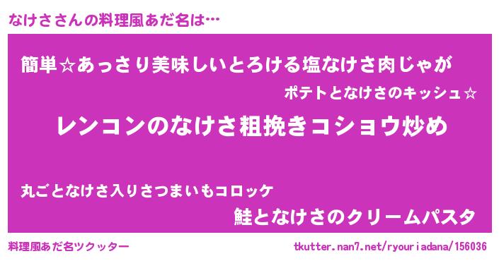 | 意味不明あだ名 | 『自称なけさ』『永久保存なけさ』 |