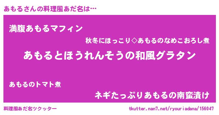 | ヘコむあだ名 | 『あもる(笑)』『あももー』『あもを』 |