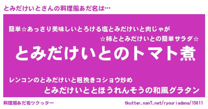 | ヘコむあだ名 | 『とみだけいと(爆)』『とみっぺ』 |
