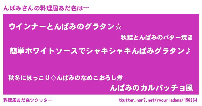 | 女子向けラノベタイトル風あだ名 | 『んぱみ様がみてる』『んぱみ伯爵の花嫁』 |