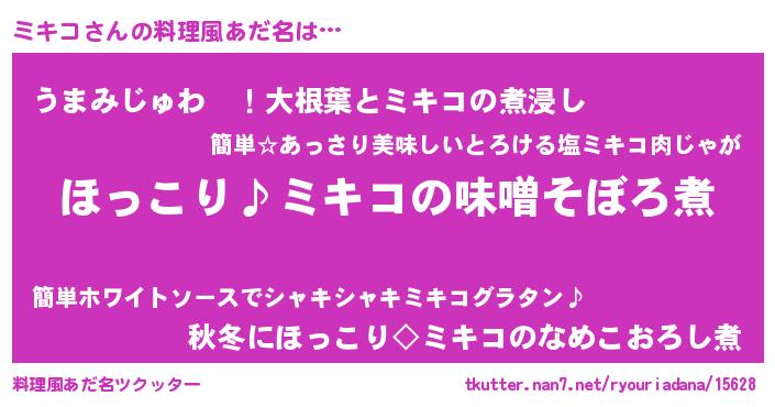 | ファンタジー風あだ名 | 『ミキフェル』『エターナルミキコー』 |