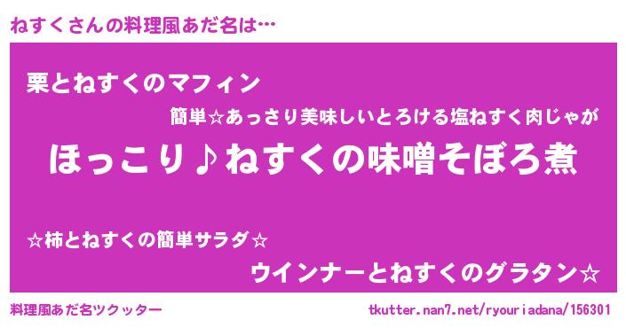 | ヘコむあだ名 | 『ねすにー』『豆乳』『ねすく(苦笑)』 |