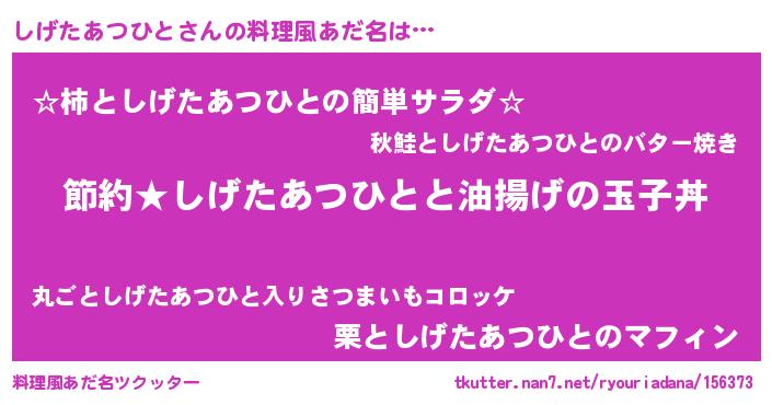 | ヘコむあだ名 | 『しげふぇ~』『しげたあつひと(笑)』 |