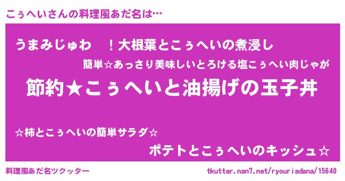 | 男性向けラノベタイトル風あだ名 | 『コゥヘイアートオンライン』 |