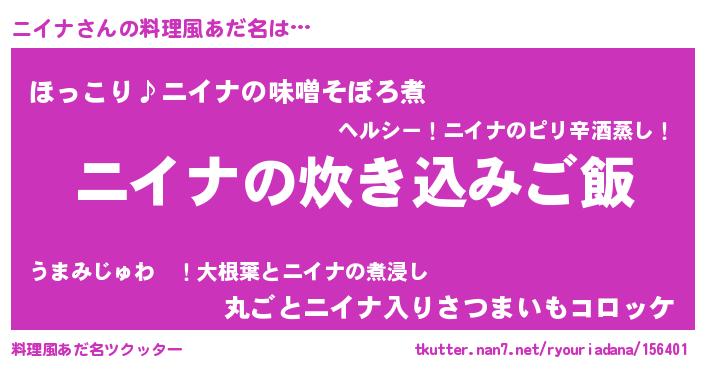 | 意味不明あだ名 | 『ペロリンニイナ』『自称ニイナ』 |