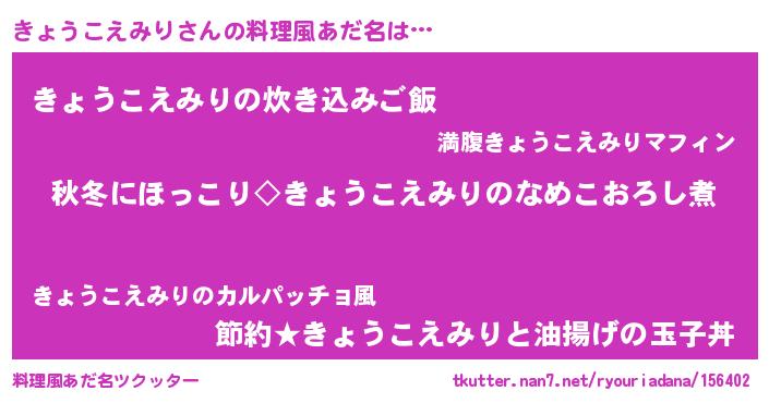| 胡散臭い通販商品みたいなあだ名 | 『億万長者になれる水晶球…その名も「きょうこえみり」』 |