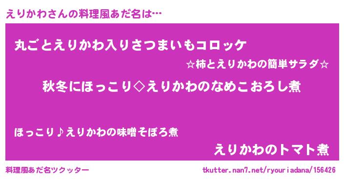 | 男性向けラノベタイトル風あだ名 | 『えりかわに滅ぼされるだけの簡単なお仕事です』 |