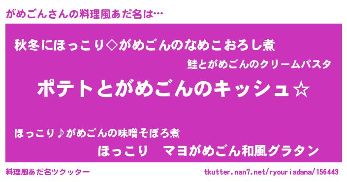 | 女子向けラノベタイトル風あだ名 | 『がめごんの卵を拾いまして』 |