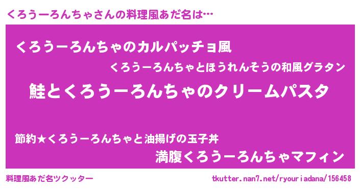 | ヘコむあだ名 | 『くろうーろんちゃ(遠い目)』『くろふぇ~』 |