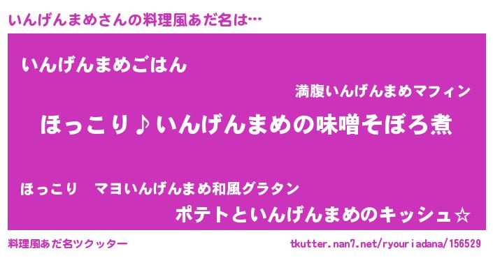 | 女子向けラノベタイトル風あだ名 | 『(仮)いんげんまめのやんごとなき事情』 |
