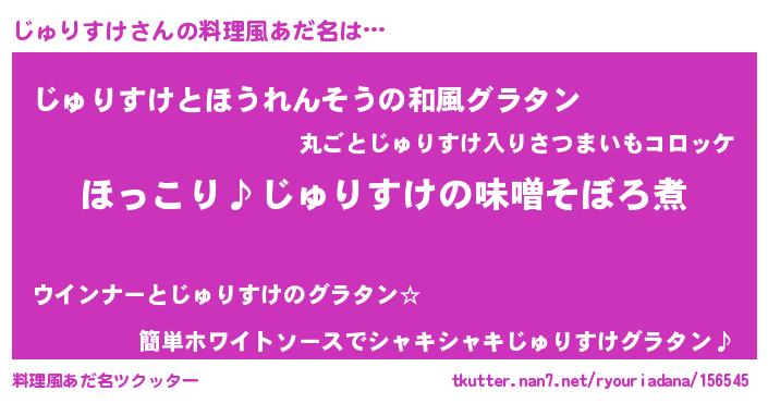 | 女子向けラノベタイトル風あだ名 | 『(仮)じゅりすけのやんごとなき事情』 |