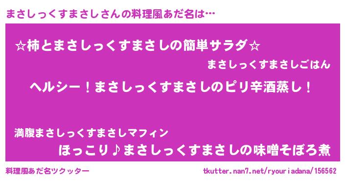 | 男性向けラノベタイトル風あだ名 | 『Re:まさしっくすまさしから始める異世界生活』 |