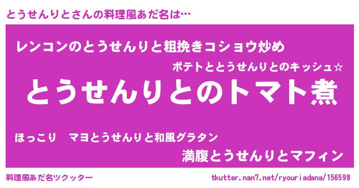 | ヘコむあだ名 | 『とうせんりと(笑)』『とうを』 |