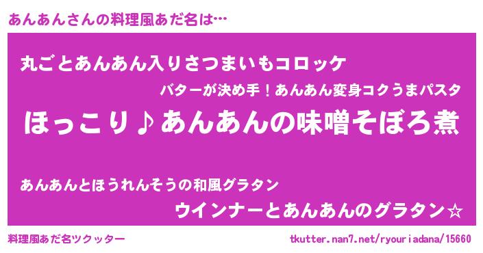 | ヘコむあだ名 | 『あんもー』『なまこ酢』『あんを』 |