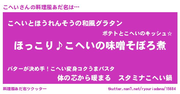| ピコ太郎風あだ名 | 『ココ次郎』『ピコ八郎』『コヘ四郎』 |