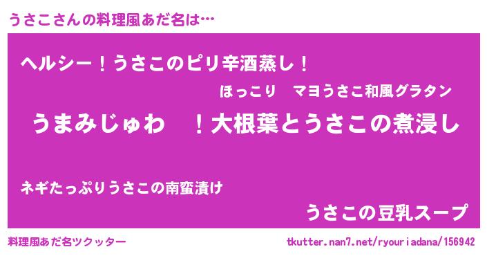 | ポケモン風あだ名 | 『ウサコダネ』『ウサセウス』 |