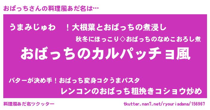 | 意味不明あだ名 | 『住所不定無職おばっち(77歳)』 |