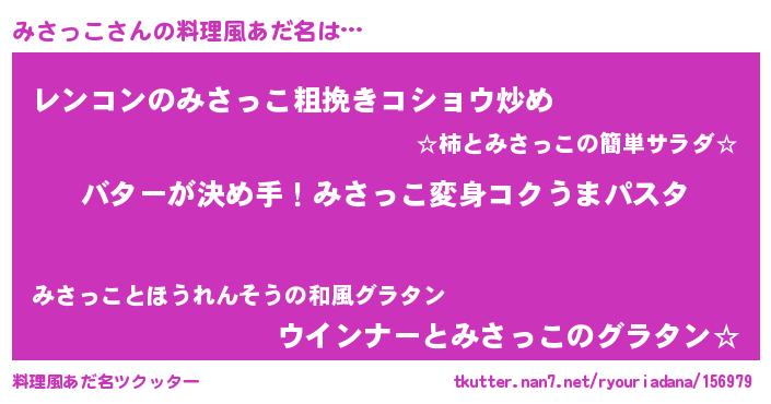 | ヘコむあだ名 | 『なまこ酢』『みさっふぃ~』 |