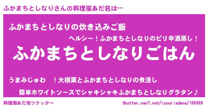 | ヘコむあだ名 | 『ふか太郎』『なまこ酢』『ふかもー』 |