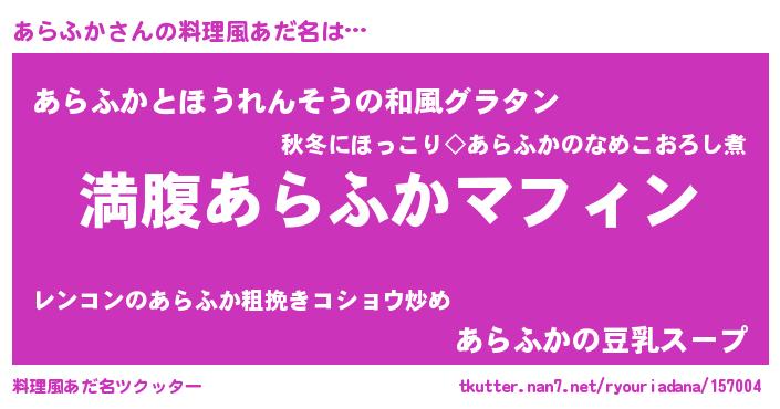 | 意味不明あだ名 | 『永久保存あらふか』『ニラ科あらふか属』 |