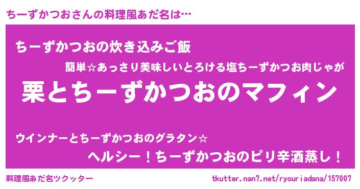 | 意味不明あだ名 | 『自称ちーずかつお』 |