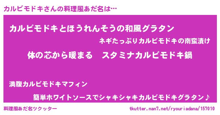 | 男性向けラノベタイトル風あだ名 | 『やはりカルビモドキの青春ラブコメはまちがっている 』 |