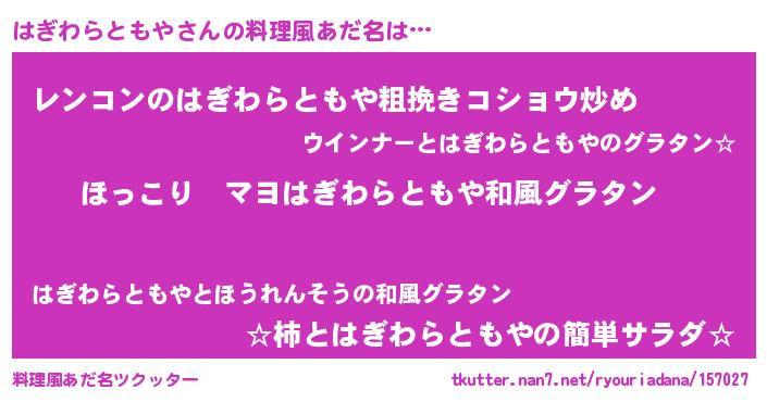 | 恥ずかしいあだ名 | 『ハギワラトモヤデラックス』『はぎちん』 |