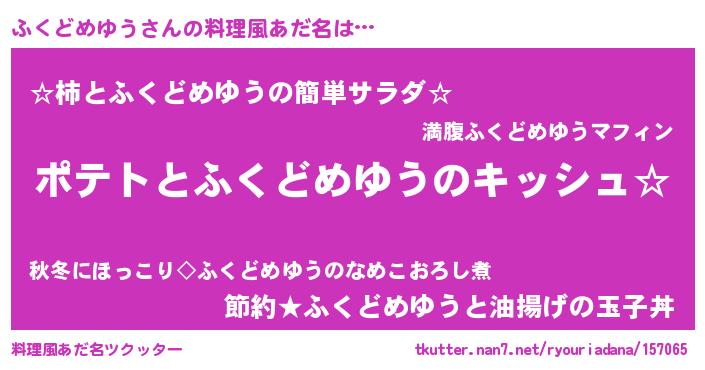 | 女子向けラノベタイトル風あだ名 | 『ふくどめゆうの卵を拾いまして』 |