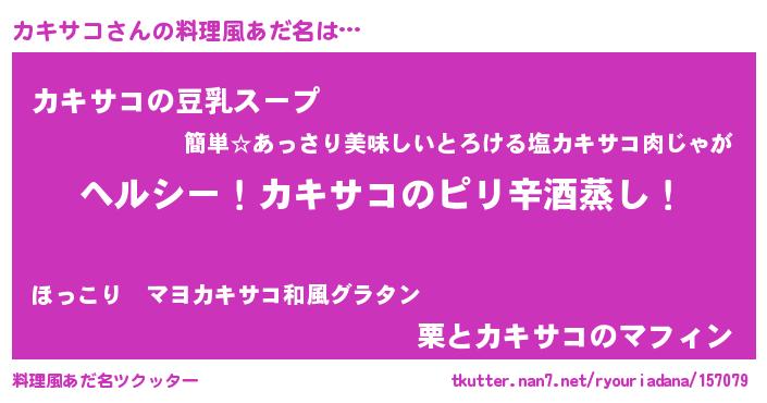 | 男性向けラノベタイトル風あだ名 | 『Re:カキサコから始める異世界生活』 |