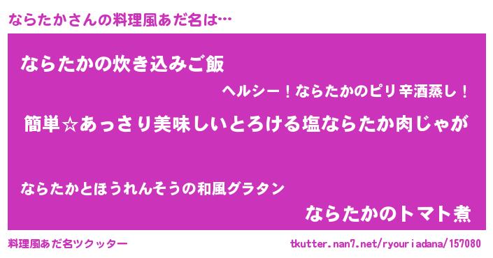 | 意味不明あだ名 | 『永久保存ならたか』『自称ならたか』 |