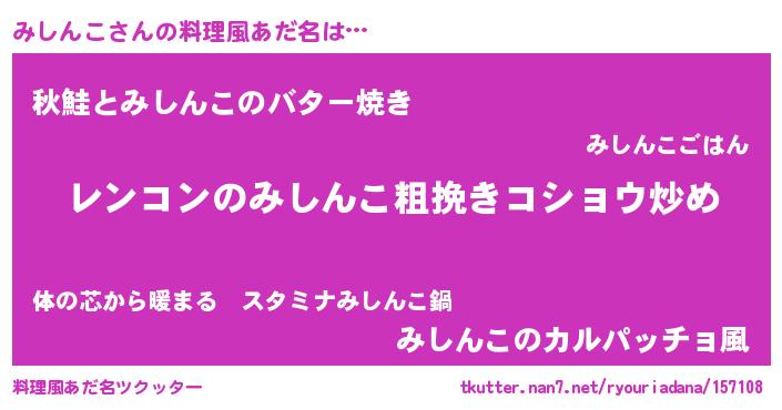 | 胡散臭い通販商品みたいなあだ名 | 『ガンによく効くアガリクス…その名も「みしんこ」』 |
