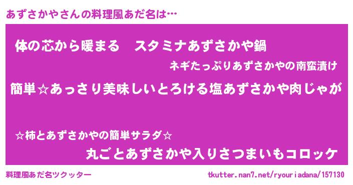| ヒーロー風カッコイイあだ名 | 『ネオアズサカヤ』『仮面アズダー』 |