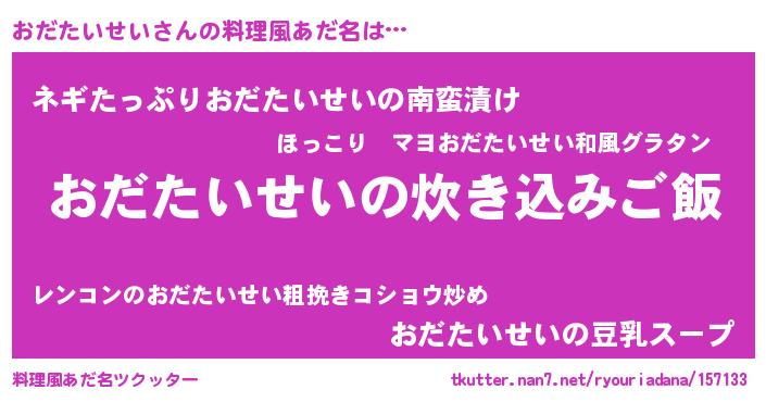 | 男性向けラノベタイトル風あだ名 | 『うちのおだたいせいが世界を掌握している!』 |