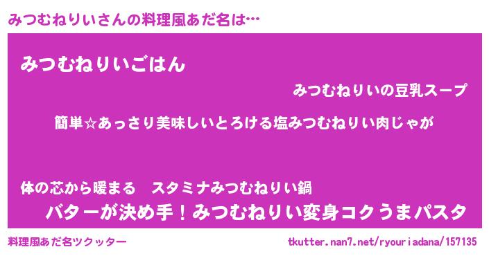 | ヘコむあだ名 | 『みつむねりい(笑)』『みつっぺ』 |