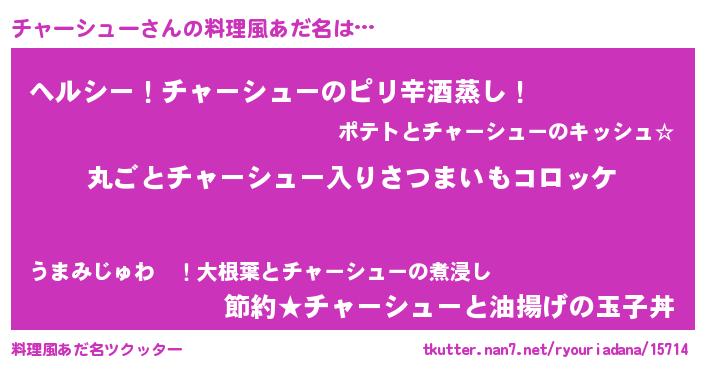 | 意味不明あだ名 | 『住所不定無職チャーシュー(56歳)』 |