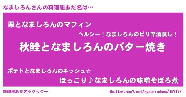 | 意味不明あだ名 | 『永久保存なましろん』『自称なましろん』 |