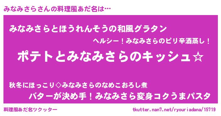 | 男性向けラノベタイトル風あだ名 | 『ダンジョンにみなみさらを求めるのは間違っているだろうか』 |