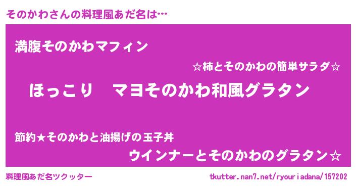 | 胡散臭い通販商品みたいなあだ名 | 『あなたにだけ特別に提供する100年もののヴィンテージワイン…その名も「そのかわ」』 |