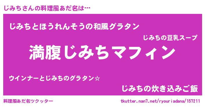 | 男性向けラノベタイトル風あだ名 | 『じみちという概念が存在しない退屈な世界 』 |