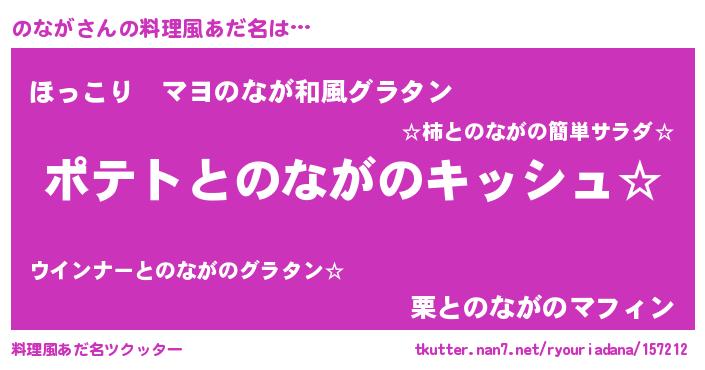 | ヘコむあだ名 | 『のなぷりん』『牛乳』『のなにゅー』 |