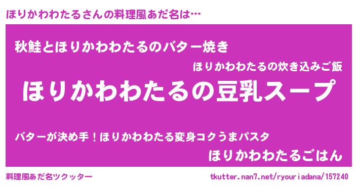 | ポケモン風あだ名 | 『ヒホリカワワタル』『ゼニホリ』 |