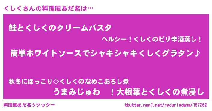 | 女子向けラノベタイトル風あだ名 | 『くしく様がみてる』『死神くしくの再婚』 |