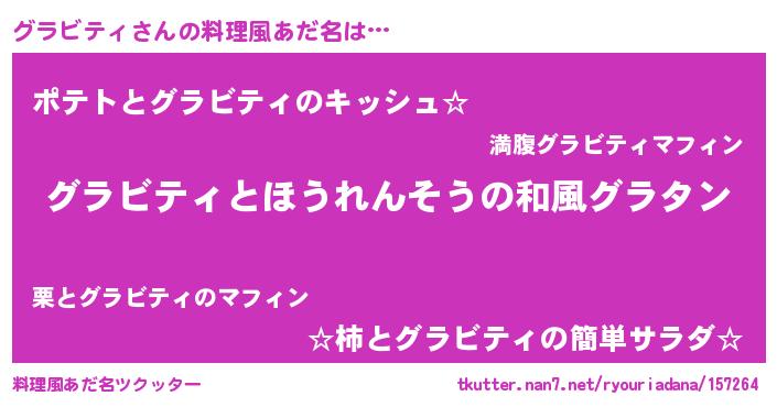 | 女子向けラノベタイトル風あだ名 | 『グラビティの玉の輿計画!』 |