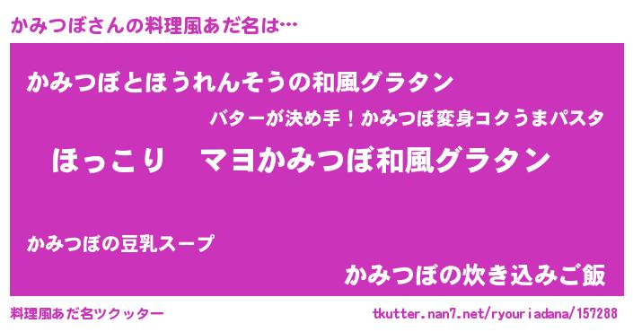 | 男性向けラノベタイトル風あだ名 | 『この素晴らしい世界にかみつぼを!』 |