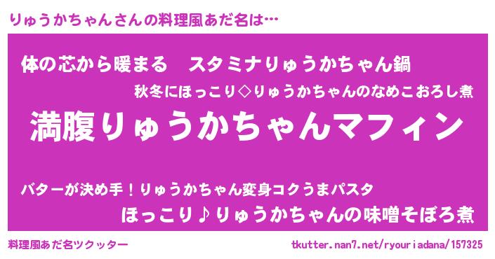 | 女子向けラノベタイトル風あだ名 | 『異世界で失敗しない100のりゅうかちゃん』 |